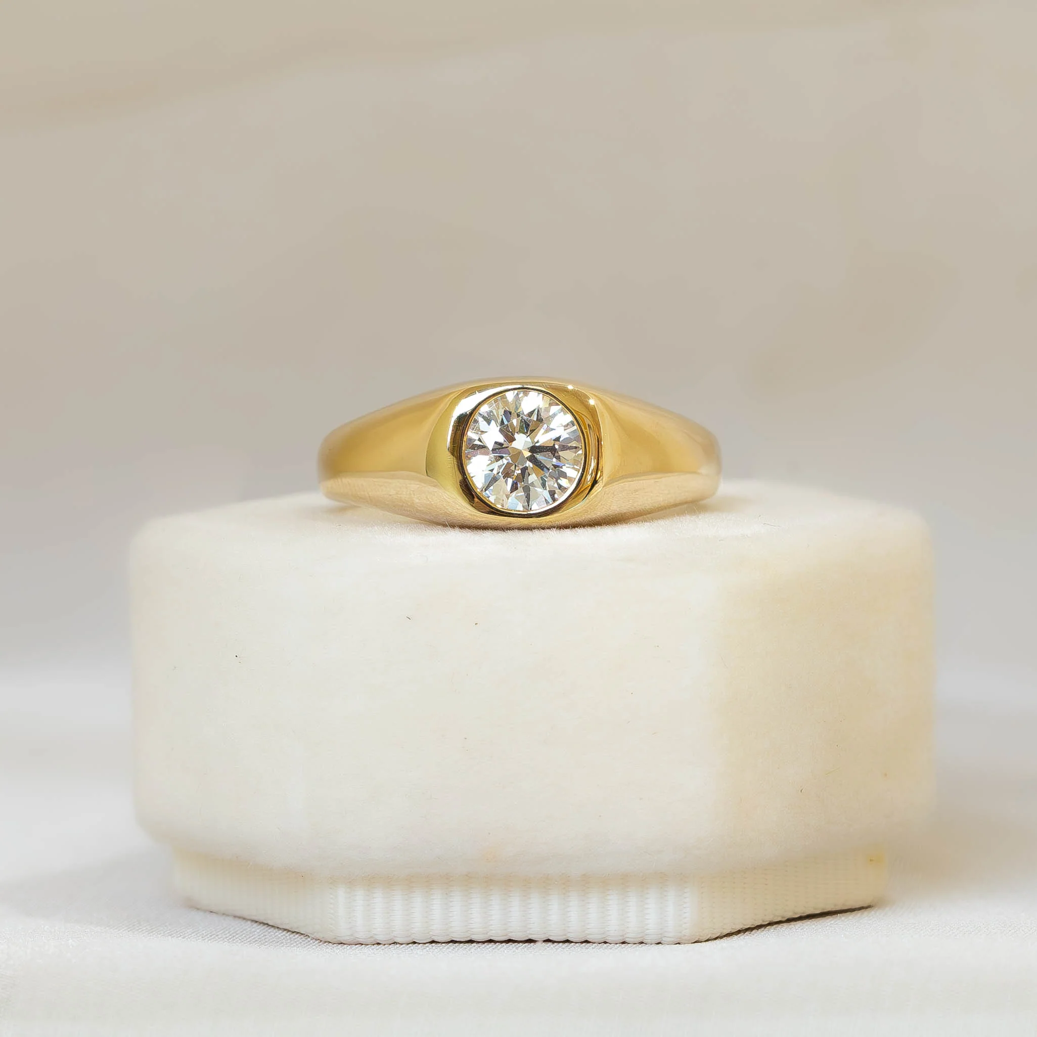 14ky Lab .82ct Round Diamond Signet Ring